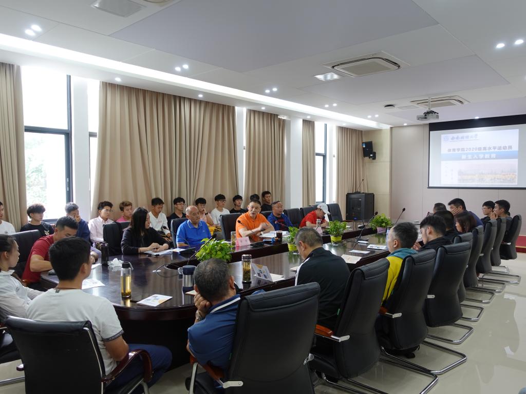 9月22日中午,2020级高水平运动队新生入学教育会在柳林校区游泳池201会议室召开,学院领导班子、竞技体育系以及全体教练员、2020级高水平运动员参会,会议由竞技体育系主任张锐主持。