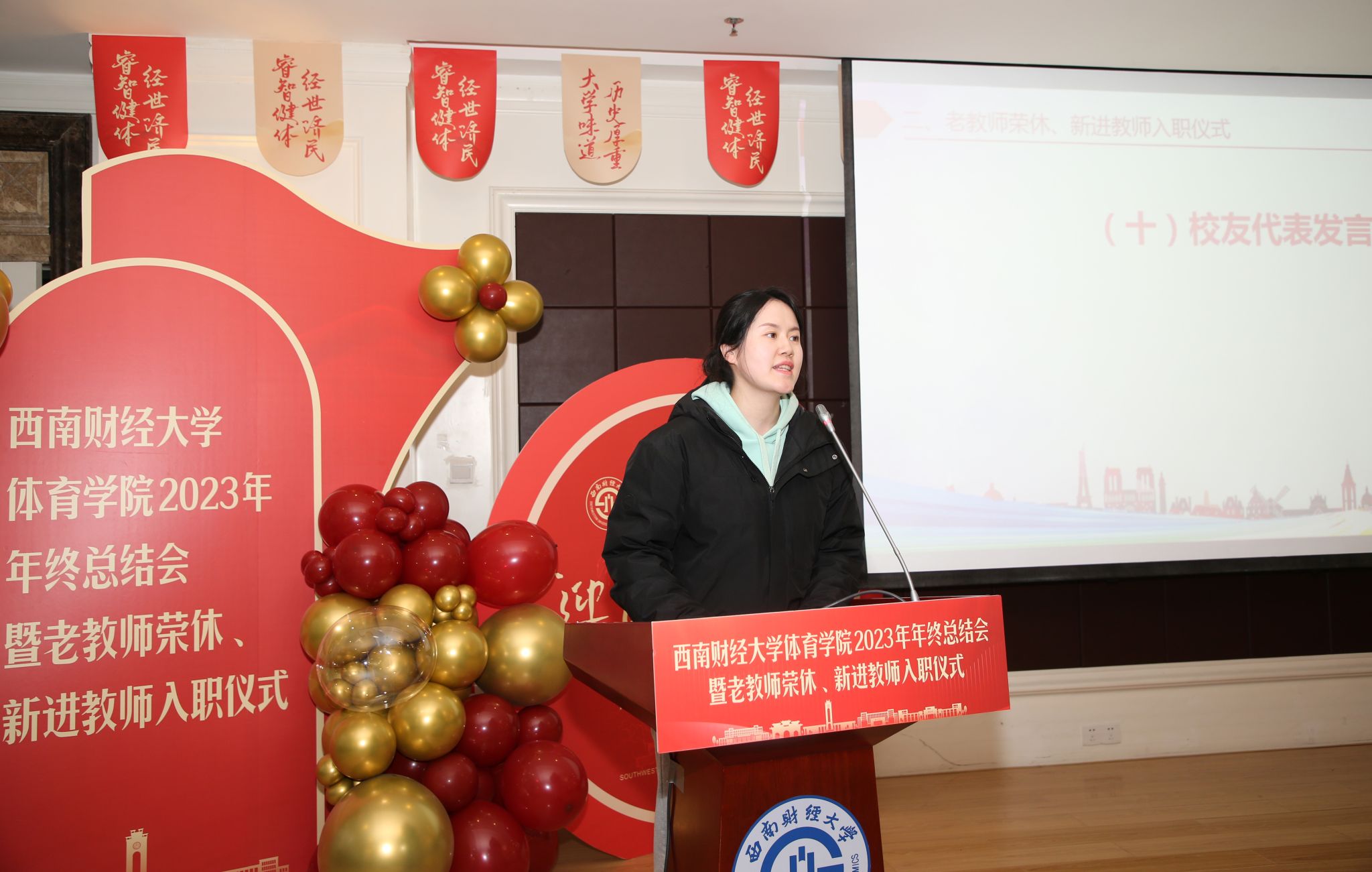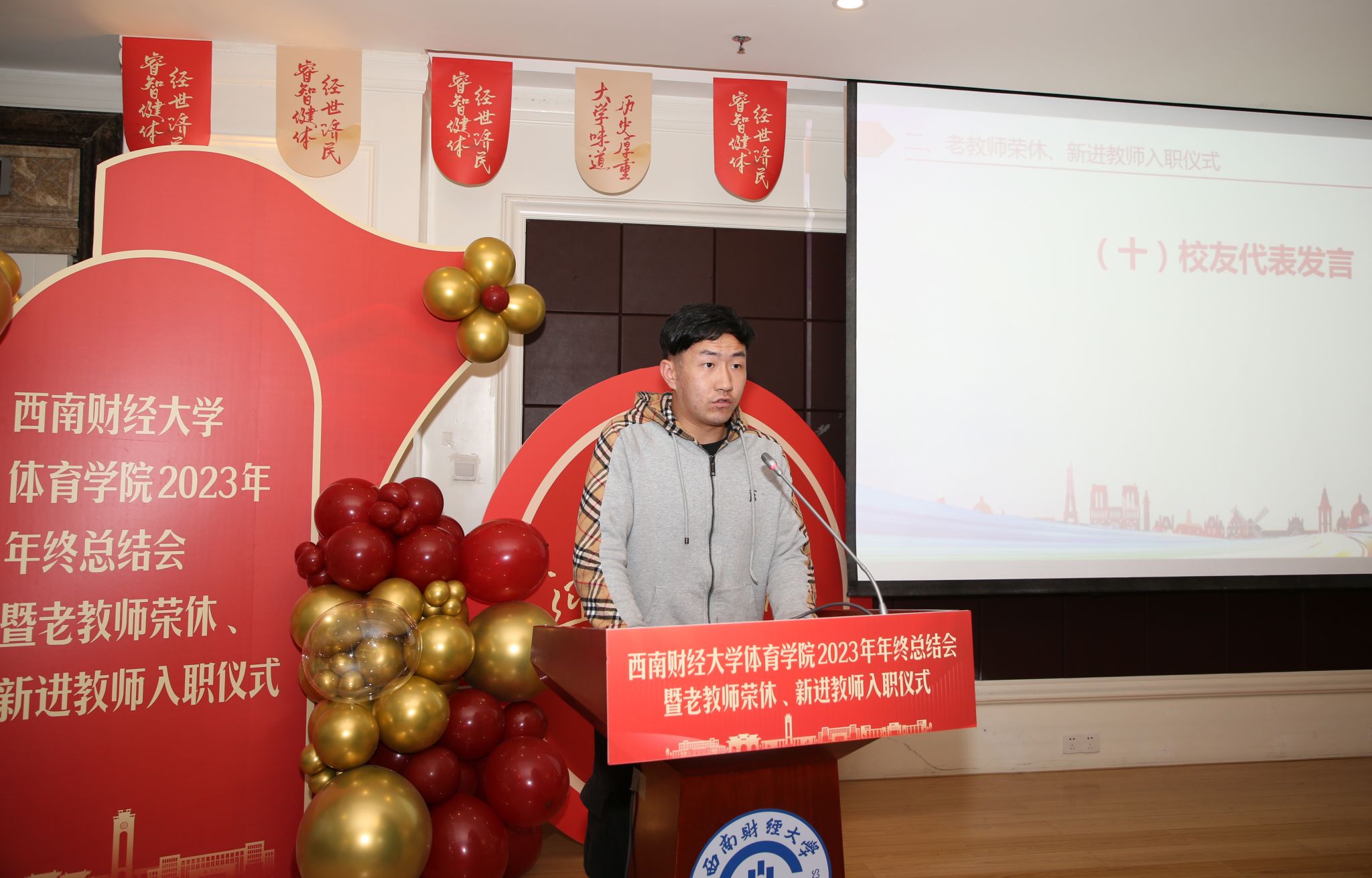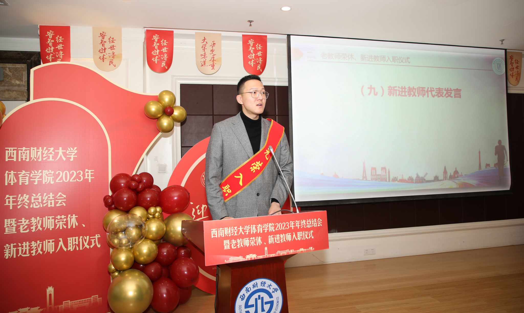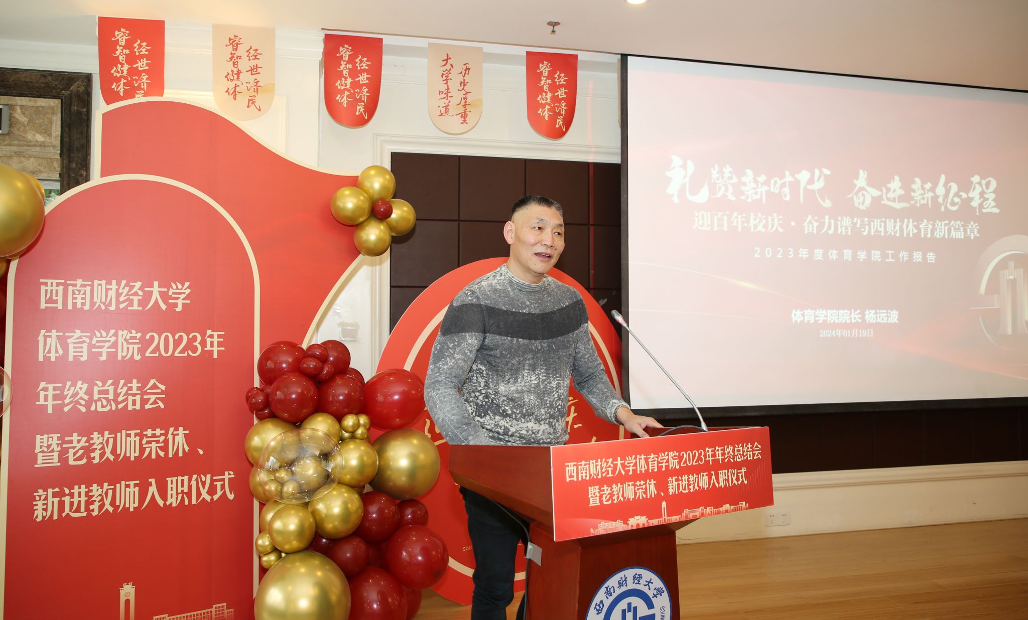 杨远波代表学院向荣休的张堰玲、赵强两位教师表示衷心的感谢并致以良好的祝愿,向新入职的青年教师表示热烈的欢迎。他指出,老教师荣休、新教师入职仪式作为学院师德师风建设的一项重要内容,目的是赓续百年初心,担当育人使命,让红色血脉生生不息、让“睿智健体、经世济民”的西财体育人文精神代代相传。张堰玲、赵强见证了OD在线平台的发展,他们四十年如一日与学院同荣辱、共成长,默默奉献、朴实无华、不求名利,为学院和学校的发展付出了毕生心血、作出了重要贡献。希望老教师们保重身体,一如既往支持学院发展。同时,他对新入职的教师提出希望:坚持“四个相统一”,将立德树人贯穿教书育人全方位全过程,争做“四有好老师”和新时代“大先生”,牢记为党育人、为国育才使命,为培养德智体美劳全面发展的社会主义建设者和接班人作出新的更大贡献。当前,正值全校上下喜迎百年校庆之际,从黄浦、光华、柳林的薪火相传中,汲取西财体育发展的力量,做好冲刺之年学院迎百年校庆的相关筹备工作,是每一位西财体育人光荣的使命和责任,我们一定要凝心聚力、同心筑梦,为学校百年华诞绘就丰富多彩的体育画卷。