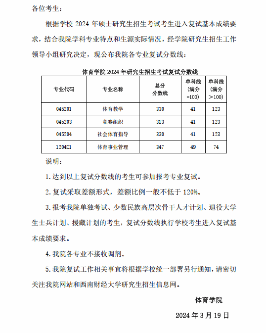 OD在线平台关于公布 2024 年硕士研究生招生考试复试分数线的通知