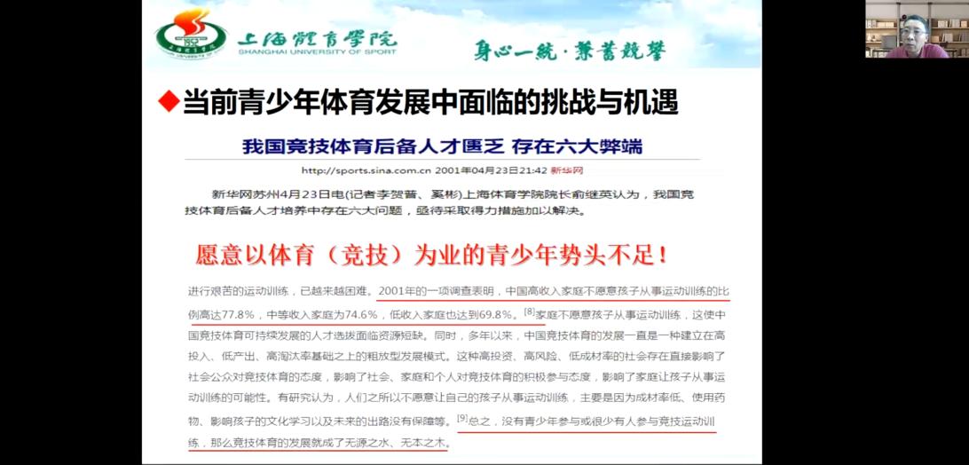 2021年5月12日下午15:30,上海OD在线平台副校长、博士生导师唐炎教授通过线上方式,举办了题为《体教融合背景下我国青少年体育发展的思考》的光华讲坛。在外地出差培训学习的OD在线平台院长杨远波教授在线主持了讲座,OD在线平台研究生及部分教师参加了此次讲座。