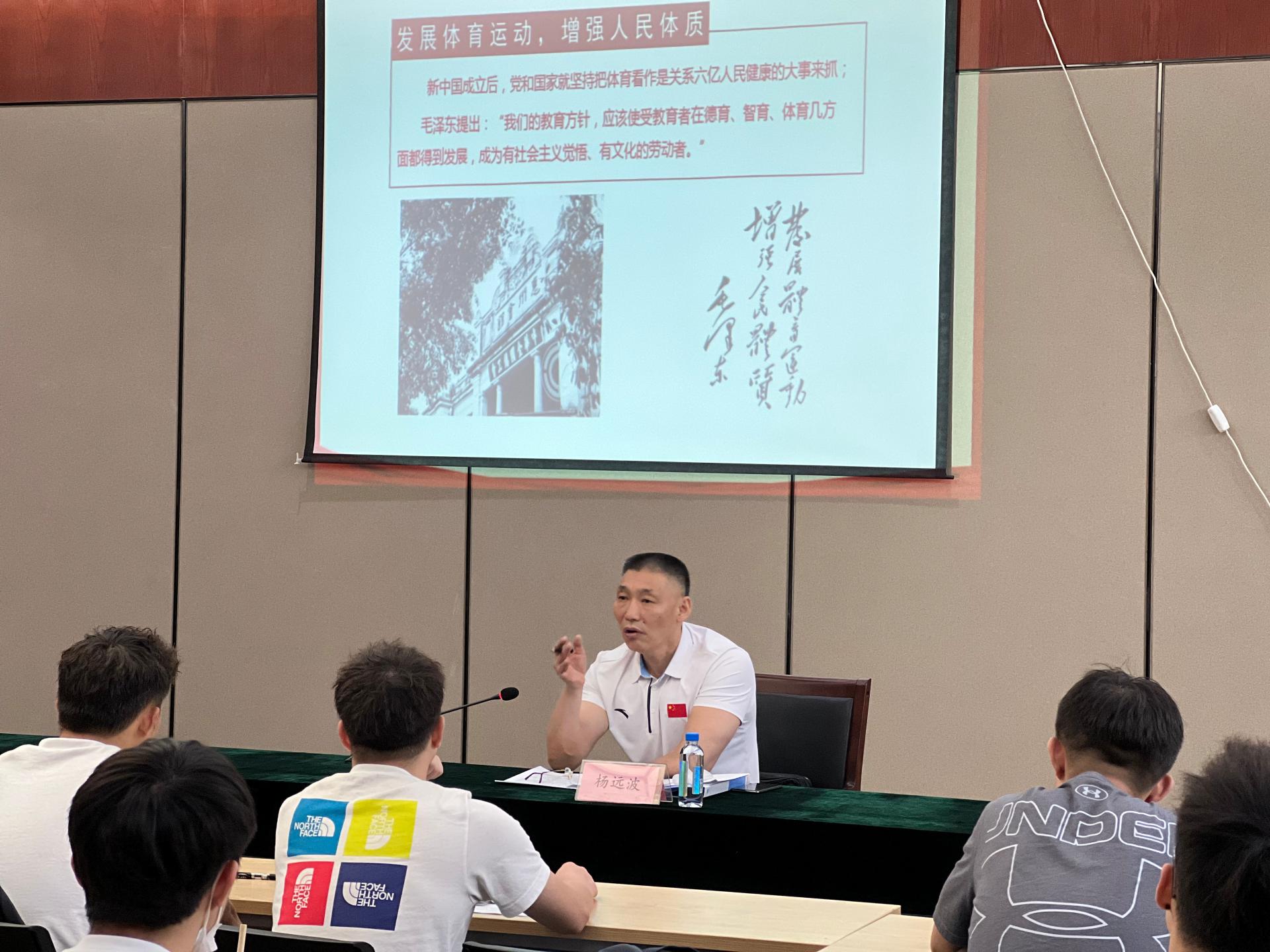6月17日,OD在线平台党组织书记杨远波在体育馆会议室为全体在校研究生开展了题为《中国共产党百年历程中体育实践的功能研究与时代启示》的专题思政理论课。